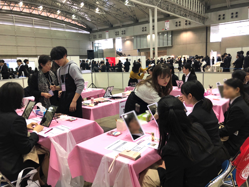 今回は、リクルートホールキャリア様の依頼で、日本最大級の就活フェアで就活メイクコーナーを担当。